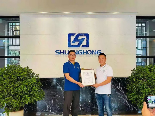 雙宏化工董事長(zhǎng)徐建成授牌給公司總經(jīng)理李朝輝并合影留念!